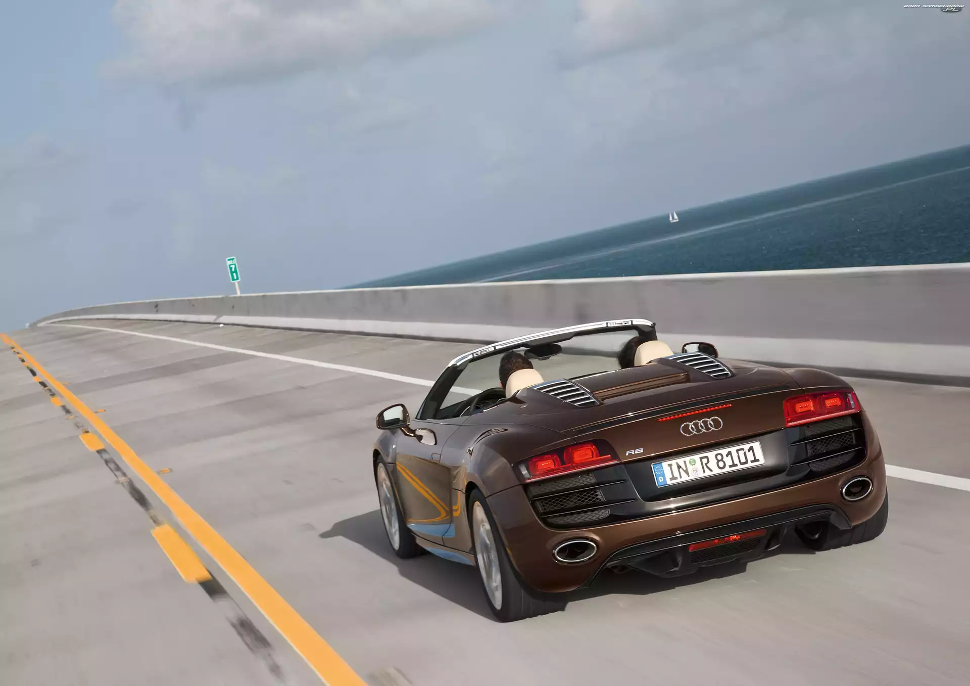 Audi R8 Spyder, Brązowy, Metalik Audi R8, Spyder Audi R8, ABT, Sportline Układ, FSI, Audi R8, Wydechowy R8 Recaro, Audi R8 Audi R8 Coupé 5.2 FSI Quattro V10 Reflektor, Audi, R8 Audi R8 Spyder, Wnętrze Audi R8, Tuning Zaciski, Audi R8, Czerwone Audi R8, Wydechowy, Tył, Układ Testowa, Audi R8, Jazda Blask, Srebrne, Audi R8